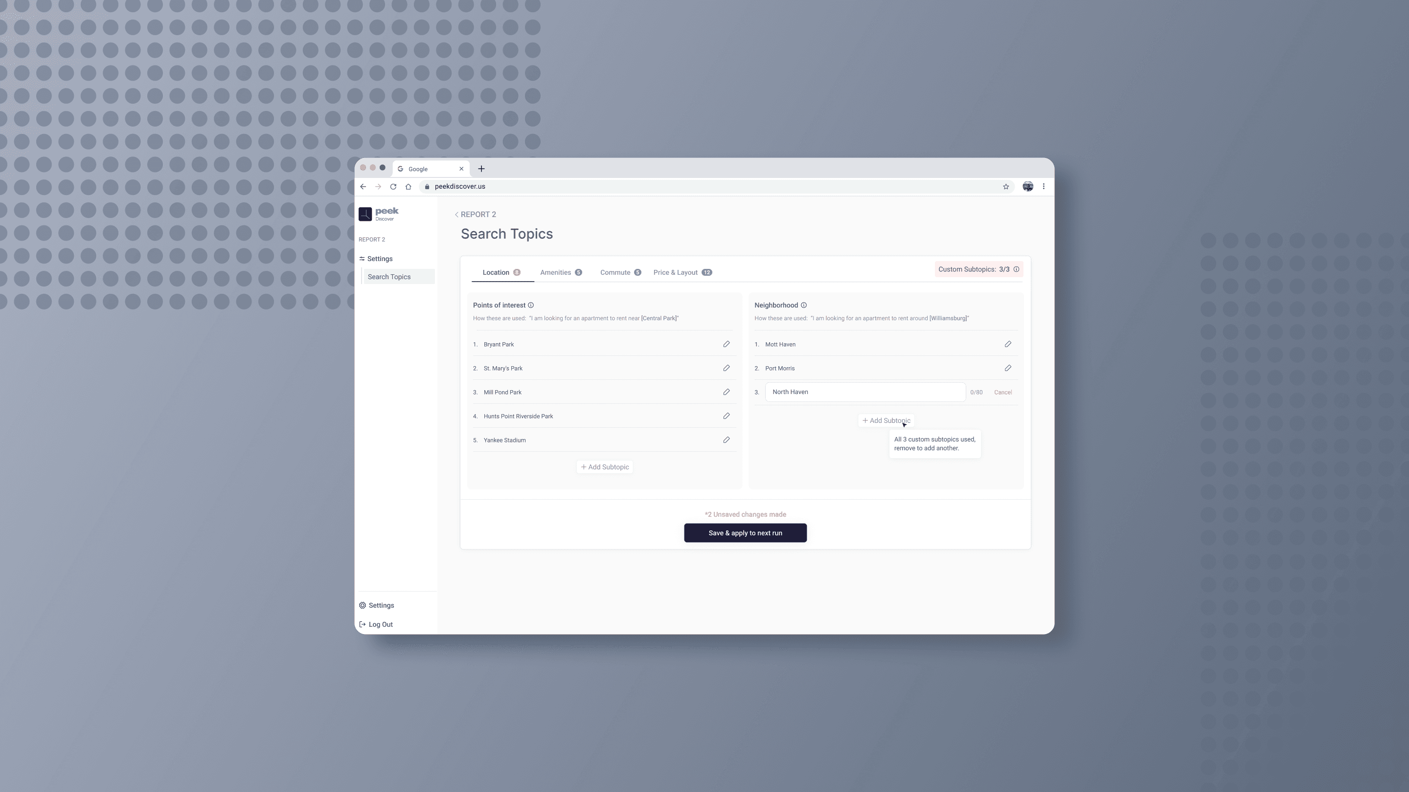 The topics users most wanted to add were the same ones hurting their visibility. Giving full control would have undermined the thing that makes Peek valuable.